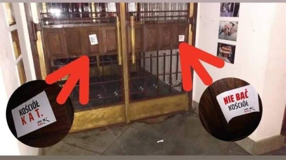 Źródło zdjęcia 1: https://d-nm.ppstatic.pl/kadr/k/r/01/2f/607eec40c937c_o,size,933x0,q,70,h,1f7c94.jpg (data dostępu: 12.06.2021 r.) Źródło zdjęcia 2: https://d-nm.ppstatic.pl/kadr/k/r/01/2f/607eec407583c_o,size,933x0,q,70,h,da2275.jpg (data dostępu: 12.06.2021 r.)https://pulawy.naszemiasto.pl/antykoscielne-wlepki-na-drzwiach-kosciola-w-pulawach-modlmy/ar/c1-8240059 (data dostępu: 23.04.2021 r.)